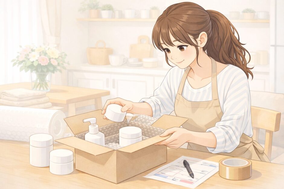 コスメ発送は「固定・緩衝・防水・箱選び」が基本。